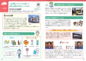 未来を担う子どもたちに、地域環境や資源の大切さを伝えるため、当社のごみ収集・リサイクルの仕事が紹介されています。